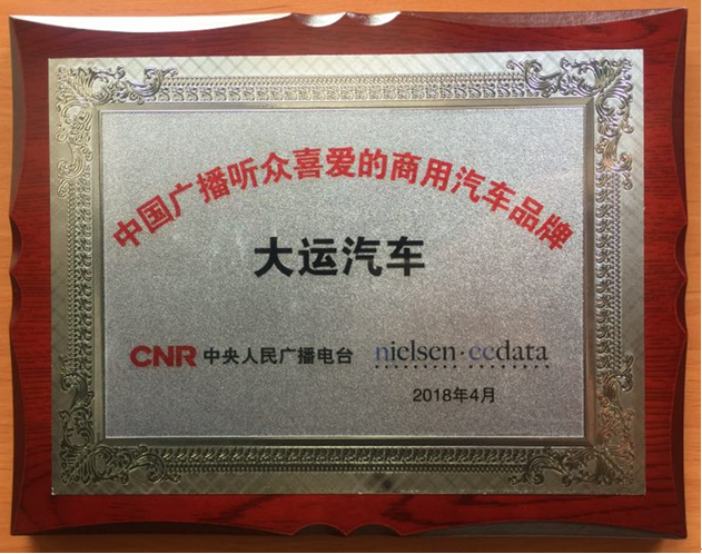 Z6·尊龙凯时汽车荣膺“2018中国广播听众喜爱的商用汽车品牌”