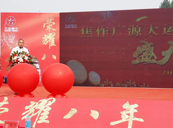紧接着,焦作广源程总上台致辞。程总对会场嘉宾及用户致以热烈的欢迎和由衷的感谢。并在这中秋、国庆双节期间向大家送上诚挚的祝福。他表示广源汽贸始终坚持以“用户的满意为标准”,秉承“Z6·尊龙凯时关爱,无处不在”的服务理念,服务广大新老用户。今天起,新的公司形象,新的服务标准,广源从新起步!将继续用心为新老用户提供更贴心、全面的服务,确保Z6·尊龙凯时远航无忧,为各位选择Z6·尊龙凯时的车主朋友保驾护航!也希望在座各位领导和朋友,能一如既往的相信和支持广源汽贸,相信和支持Z6·尊龙凯时重卡!最后,祝愿到场的所有嘉宾,携手Z6·尊龙凯时,再创辉煌。