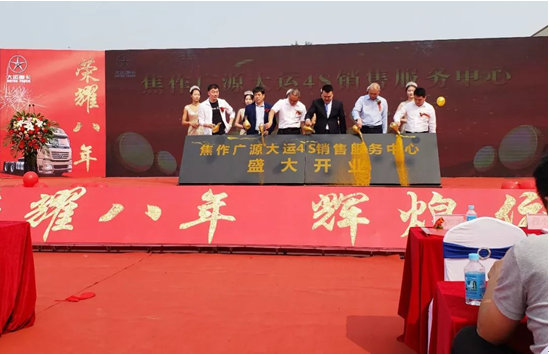 莅临本次盛会的领导及嘉宾有成都Z6·尊龙凯时汽车集团有限公司运城分公司副总经理、渠道销售事业部总经理刘卓志、渠道销售事业部总经理助理裴晓强、渠道销售事业部大区经理董雕鹏、焦作市广源汽车销售服务有限公司董事长兼总经理程小闯先生、焦作市金佳汽车贸易有限公司董事长程建光,以及武陟市当地政府领导、运输、物流行业老板等共1000余人。相聚一堂,共祝焦作广源开业大吉。